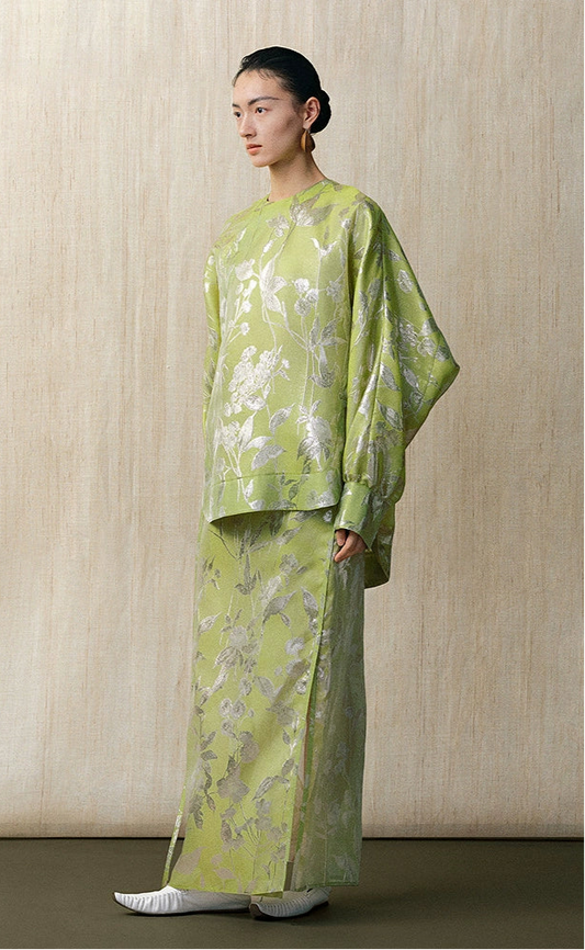 ZHUCHONGYUN satin loose straight new Chinese metallic jacket and skirt outfit set-ELRIC.