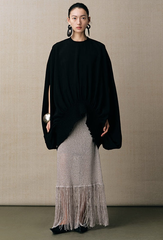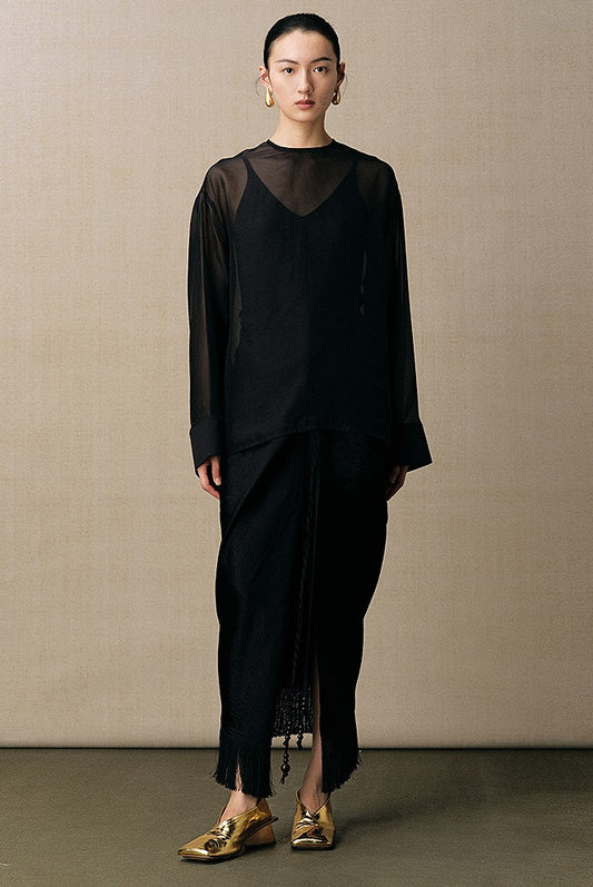 ZHUCHONGYUN long elegant tassel black skirt-FAX.