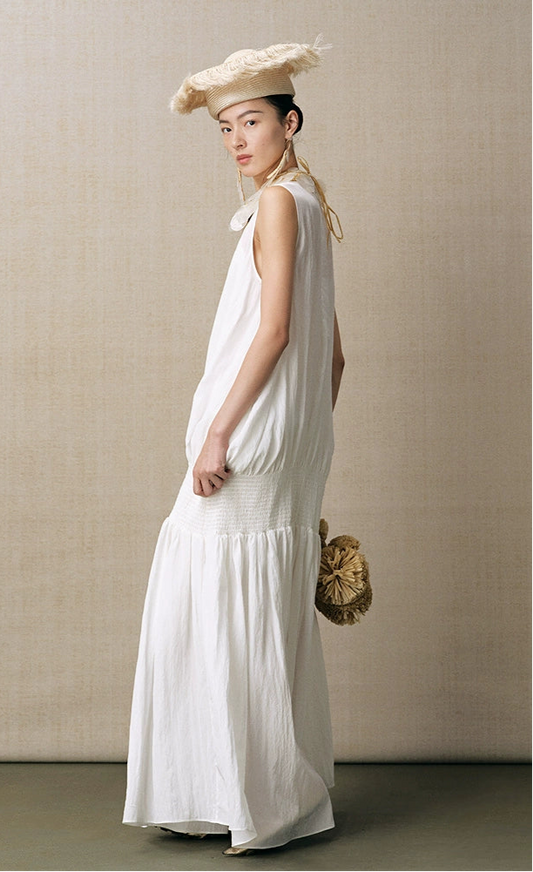 ZHUCHONGYUN white pearlescent pleated maxi dress-ROY.