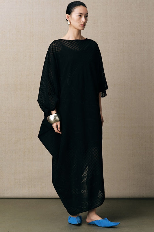 ZHUCHONGYUN black sheer panel round neck sleeveless wool dress-SURU.
