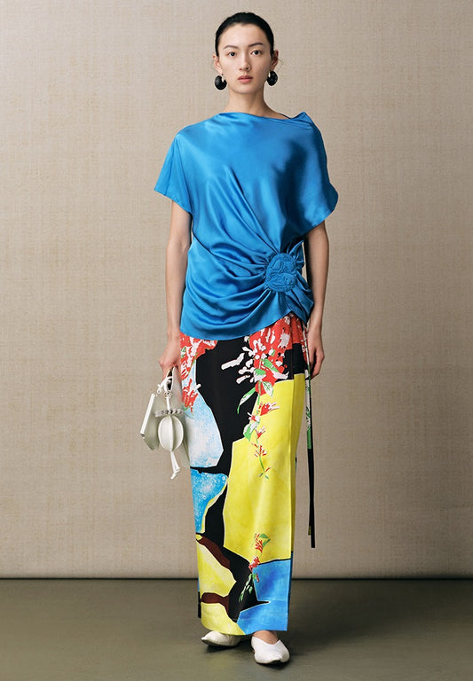 ZHUCHONGYUN multicolor silk print straight skirt-SAM.