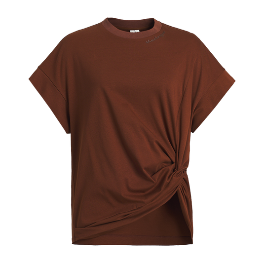 ZHUCHONGYUN wide-shouldered pleated waist slim crewneck top-CAMEL.