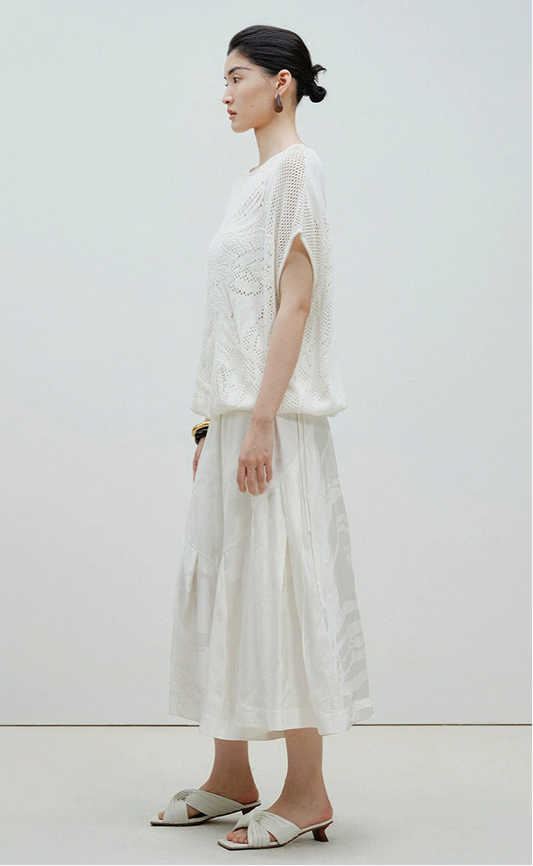 ZHUCHONGYUN snow-white fringe loose straight long skirt-SOUH.