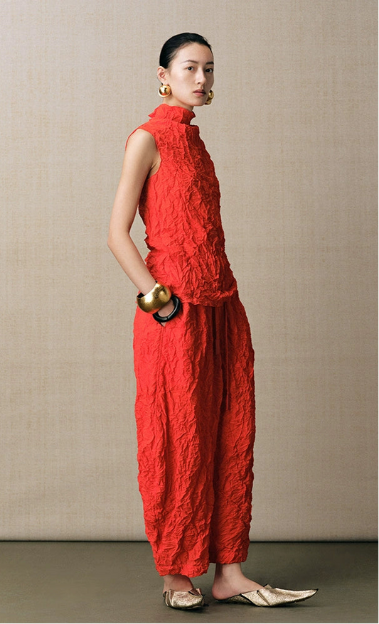 ZHUCHONGYUN pleated cocoon-shaped wide-leg trouser and top-TANMA.