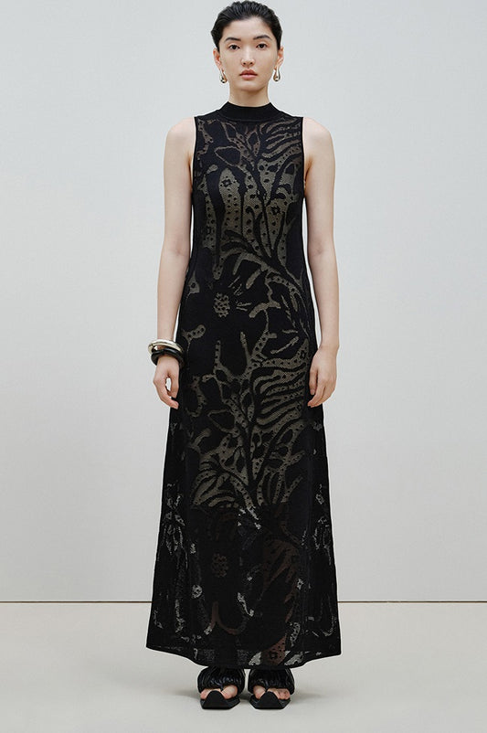 ZHUCHONGYUN Oriental Craft Sleeveless Mock Neck Maxi Knit Dress-OUMA.