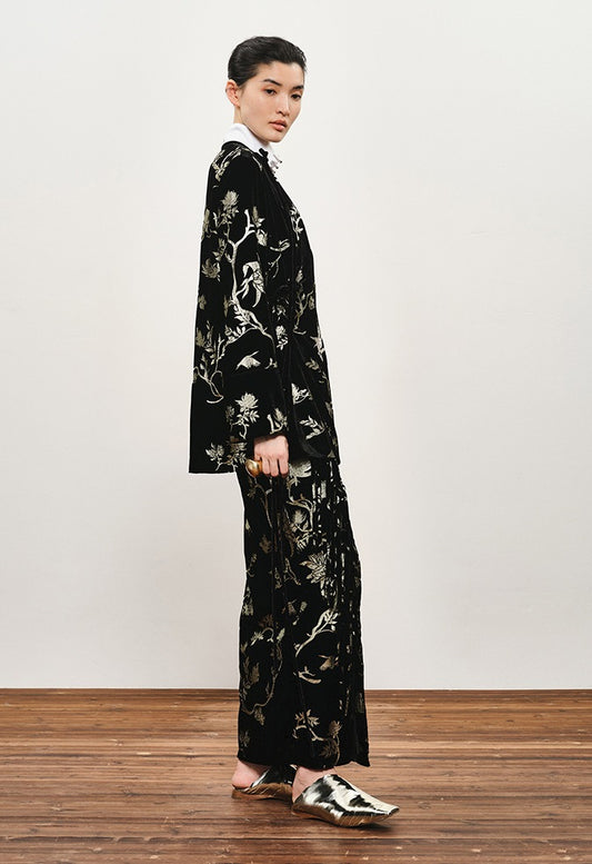 ZHUCHONGYUN black suede floral embroidery long sleeves shirt top-GILT.