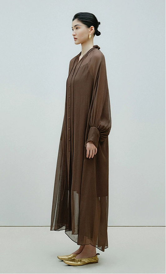 ZHUCHONGYUN Mulberry Silk Loose Sheer Sleeves Long Dress-ORITZA.