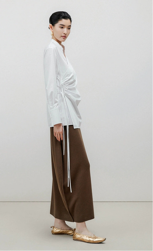ZHUCHONGYUN midi cotton skirt with side button detailing and a drawstring waist-SEZA.