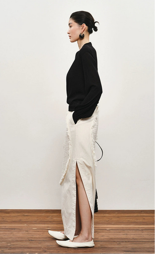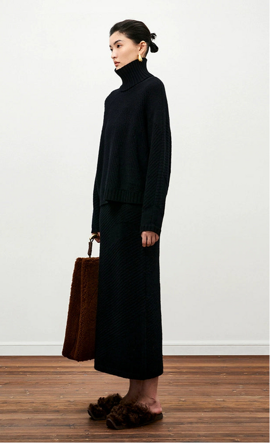 ZHUCHONGYUN Black Sheep Wool Knitted Straight Skirt-ASUNA.