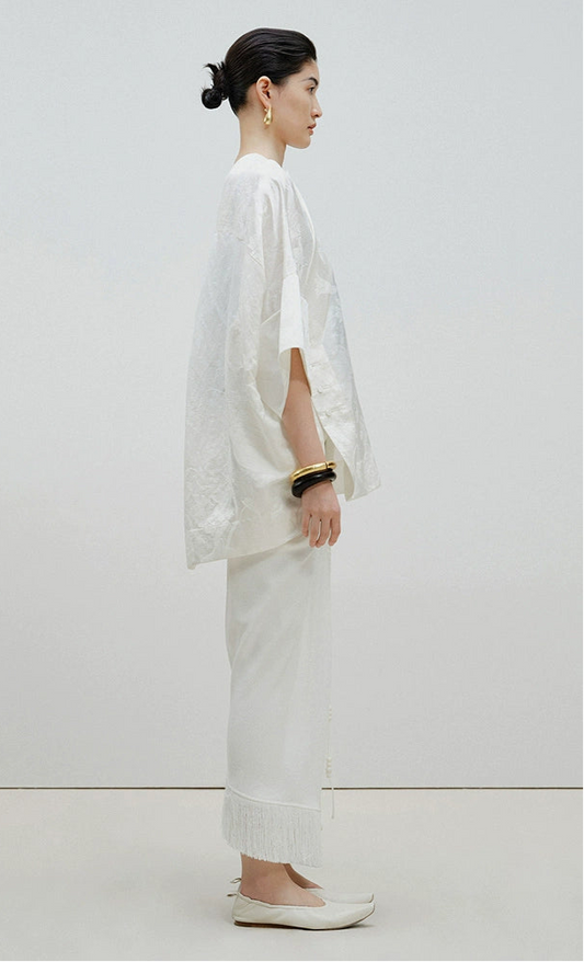 ZHUCHONGYUN white glossy finish loose short-sleeved top-ONIZUKA.