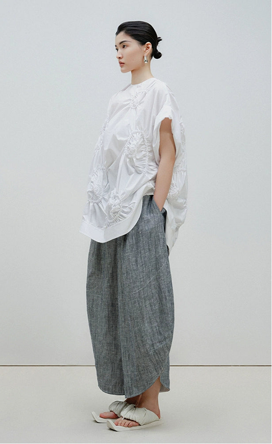 ZHUCHONGYUN Jacquard cotton linen belted loose cocoon pants-ARATAKA.