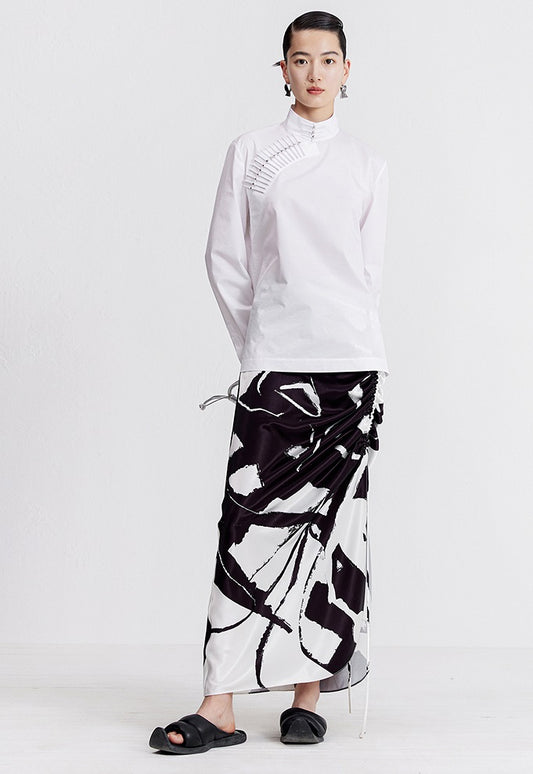 ZHUCHONGYUN black slit pleated design long skirt-OSAMU.