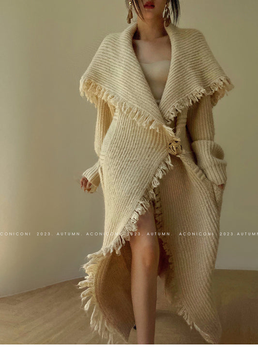 Aconiconi Boho Long Loose Knitted Sweater Tassel Jacket-Loose Tea Quinoa