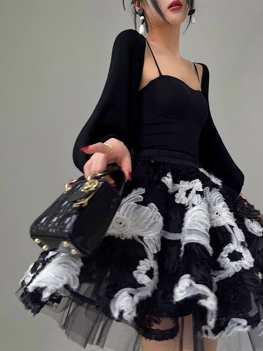 Aconiconi Elegant Black French Sleeveless High Waist Tutu Dinner Dress- Baileys