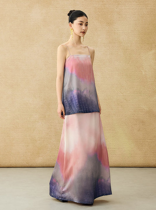 HECO Chinese Style Smudge Human Silk Camisole Cool and Breathable Seaside T - PALM.