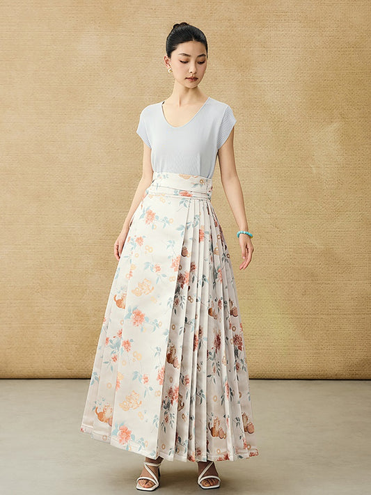 HECO Jacquard Horse Face Pleated Maxi Skirt - COARSE.