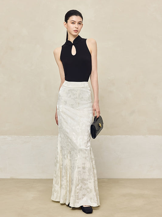 HECO Jacquard Acetic One-sided Kink White Red Black Top Woman - GOSPEL.