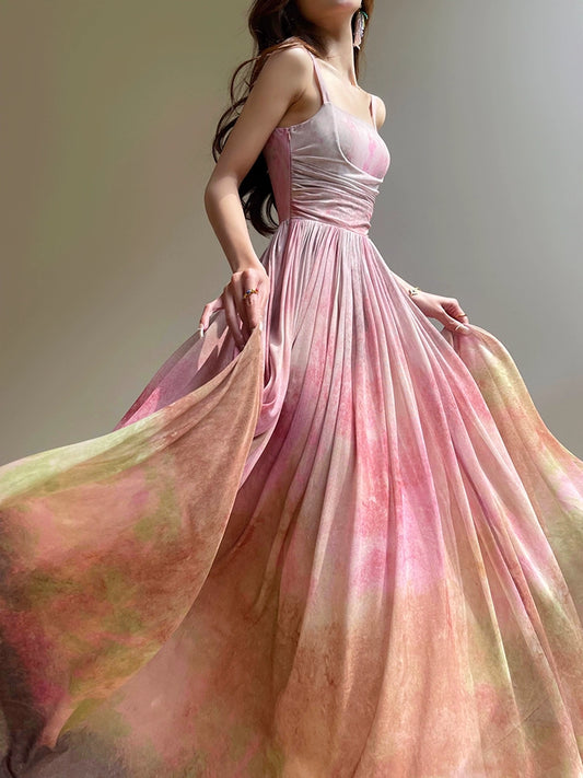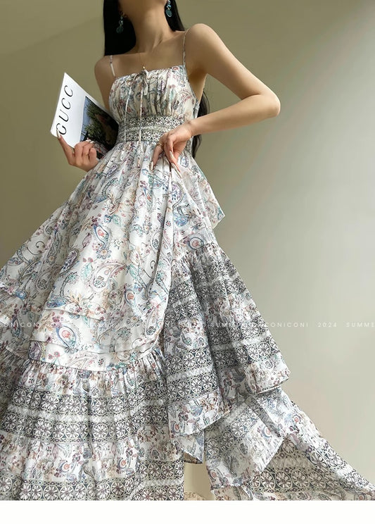 Aconiconi Elegant Retro floral Bohemain Long vacation Dress- Eden Floating Shadow