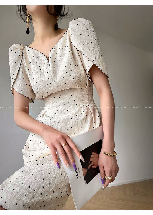 Aconiconi Elegant Polka Dot V-Neck High Waist Wedding Guest skirt top - Hoshino Ryuban