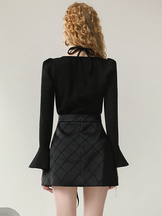 CHECOCRE Elegant Women's Design Sense Bow Satin Rhombi Two Piece Set - DESIRE