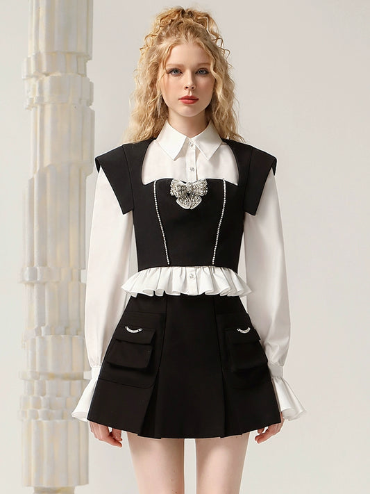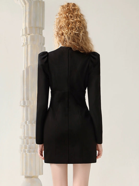 CHECOCRE Elegant Ruffle Contrasting Design Black Suit Dress- EDNA
