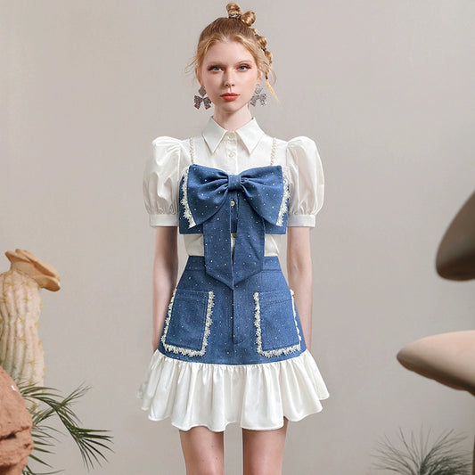 CHECOCRE Cute Bow Pocket Beaded Chain Fashion Suit Skirt - INDUCE