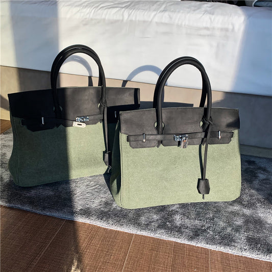 Army green Retro birkin inspired handmade canvas women men business weekender travel tote overnight weekend handbag
