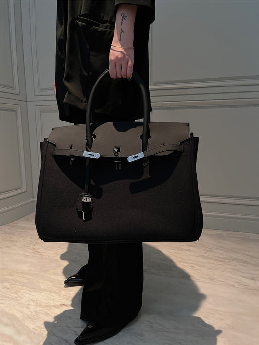 Black large-capacity canvas birkin inspired weekender travel bag