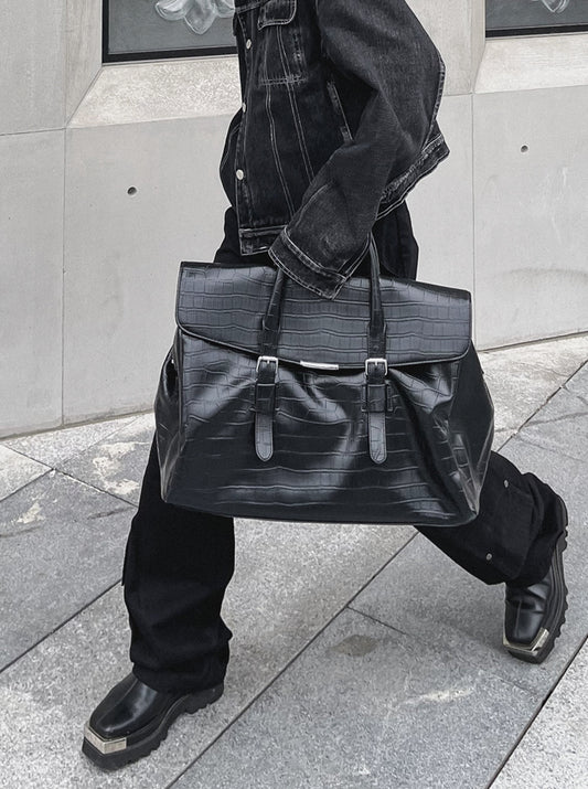 Black Platinum birkin inspired croc pattern overnight weekend tote high street travel weekender bag