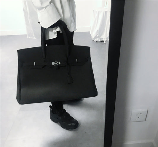 Birkin inspired handmade PU Leather Black tote buckle travel overnight weekender handbag