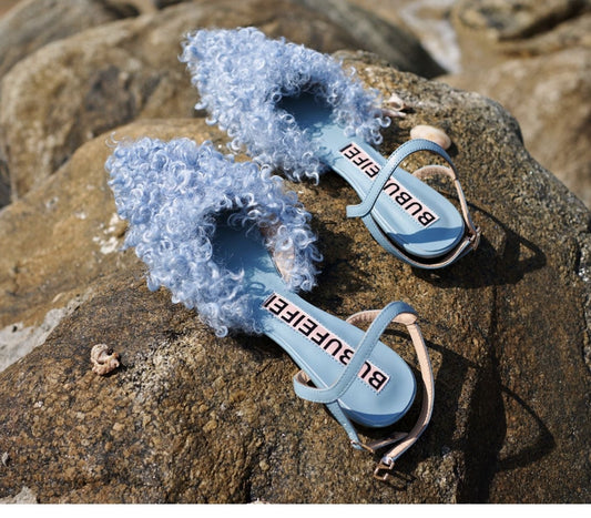 B-FEI curly wool toe leisure mule sandals curly cute girl flats -Candy Garden