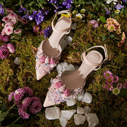 B-FEI Flat pointed toe sheepskin spring low-heeled tweed ballet flat sandals- CALI