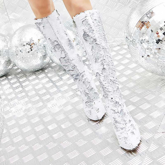 B-FEI original design over the knee bag leg stretch boots square with winter pointed- Maei