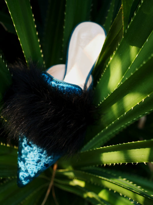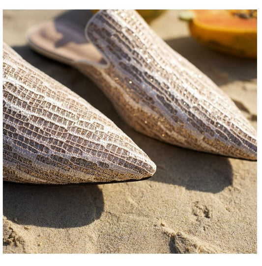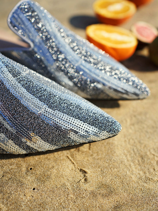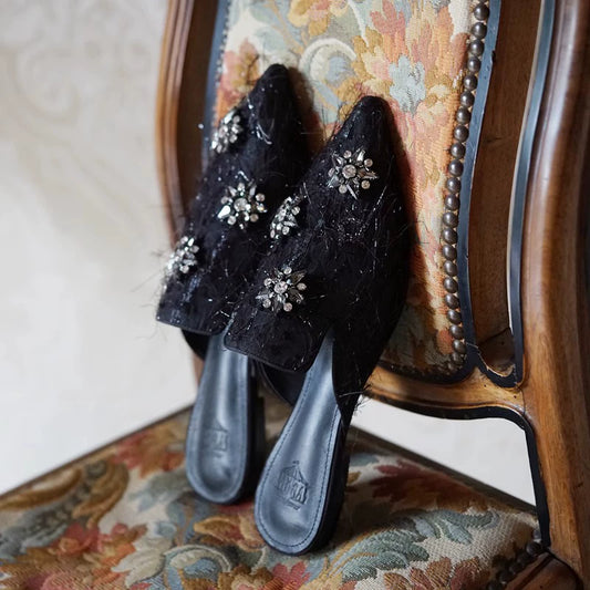 B-FEI original design texture embroidered sequins shiny mules French semi-drag - Island
