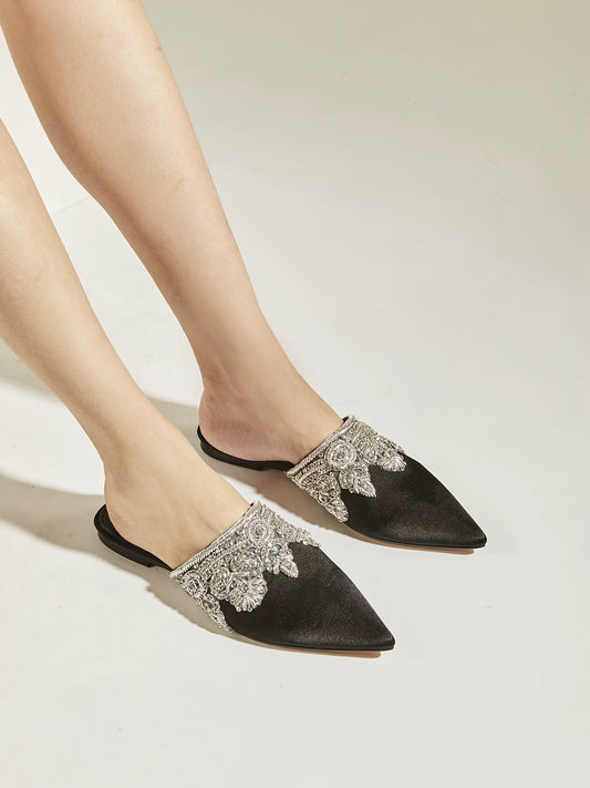 B-FEI spring summer handmade Indian silk rhinestones mule slippers - Crystal Spirit