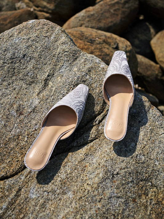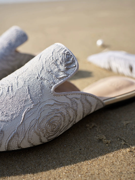 B-FEI high quality high-grade gray French half-drag flower mules -Rose Story