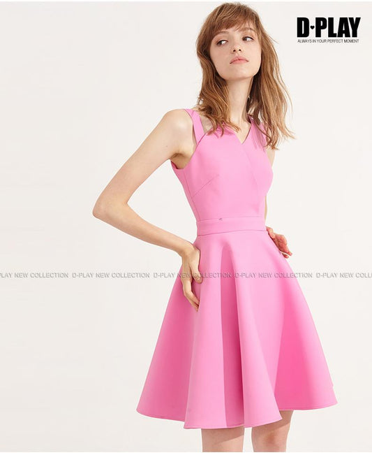 Pink neckline asymmetric waist sleeveless Asymmetric Geometric neckline dress- Kona