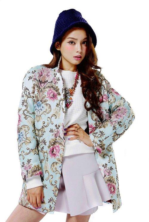 FINAL SALE Limited edition jacquard vintage embroidered pastel blue blazer- Hanako