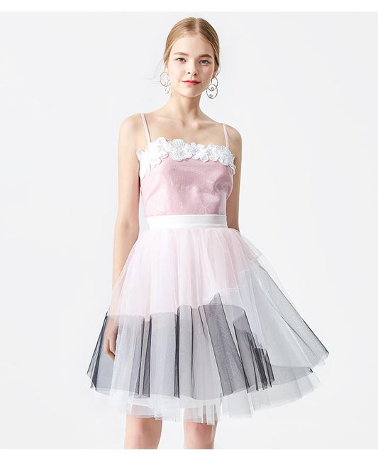 Color block mesh tulle tutu high waist skirt- Lare