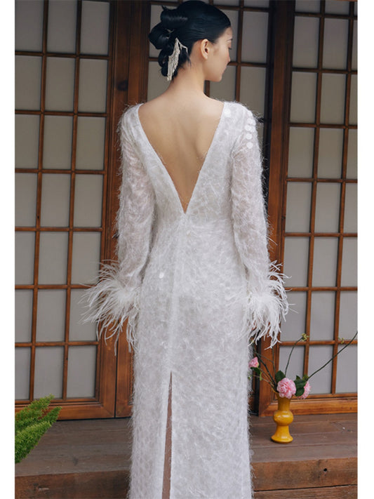 GOUDIN white bridal dress robe cool niche light luxury dress-NIMO.