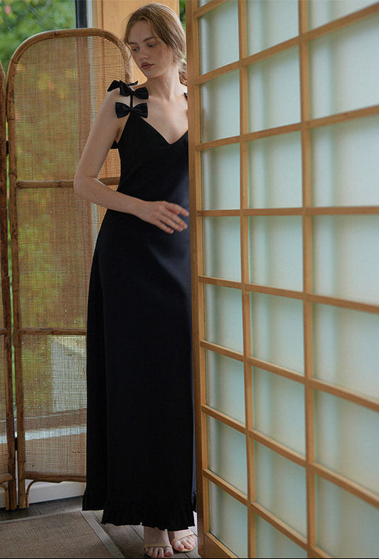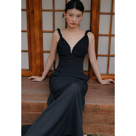GOUDIN black long suspender light luxury dress-KASIA.