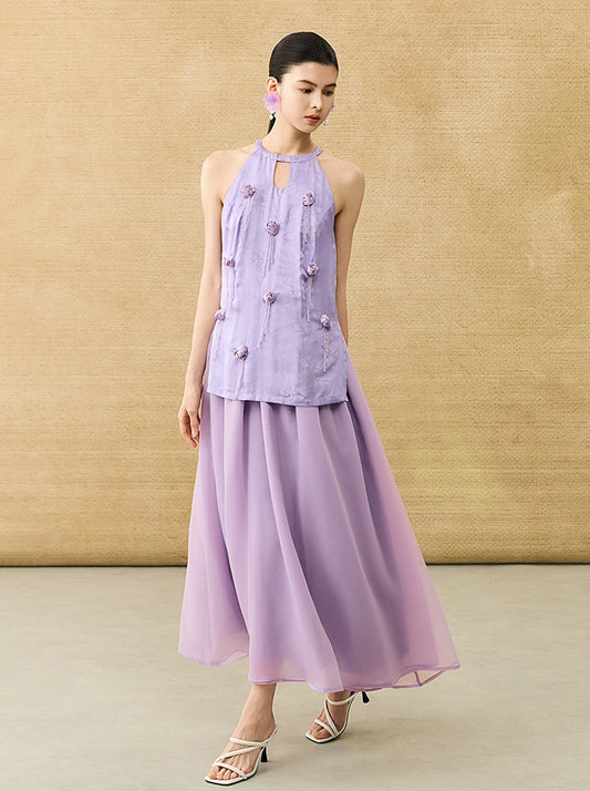HECO Chinese gradient floral flowing temperament skirt - SWAED.