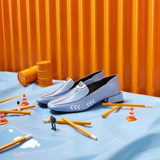 Blue Rider Pattern Loafer square heel low women's oxford loafer shoes - Hars