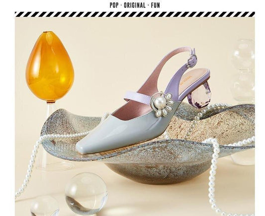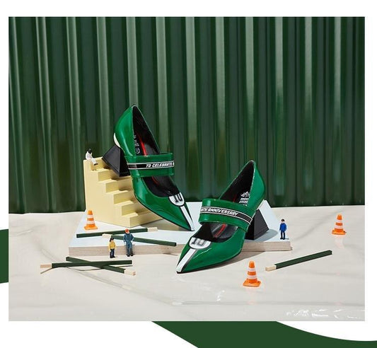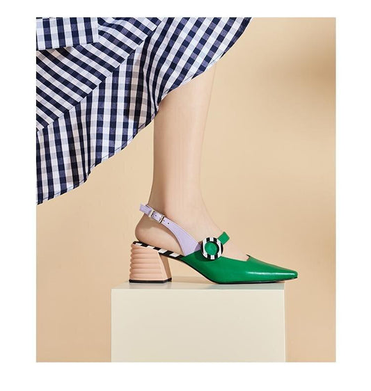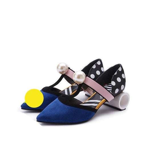 HOA designer polka stripe color block barrel high heels Mary jane quirky shoes - Uliu