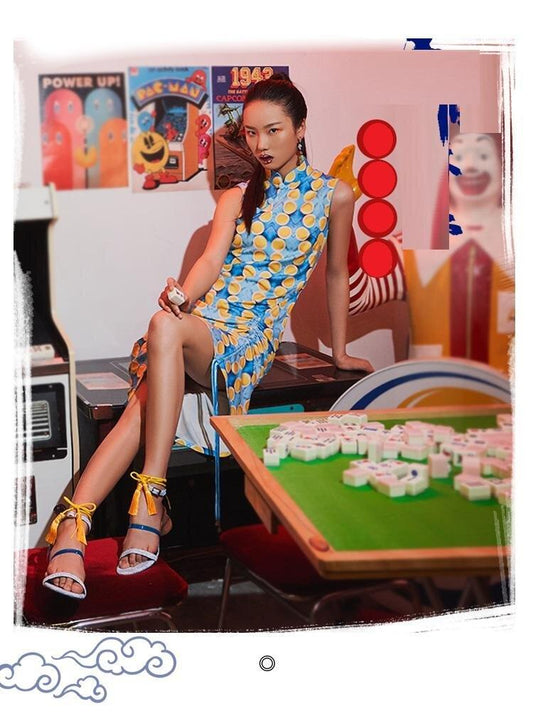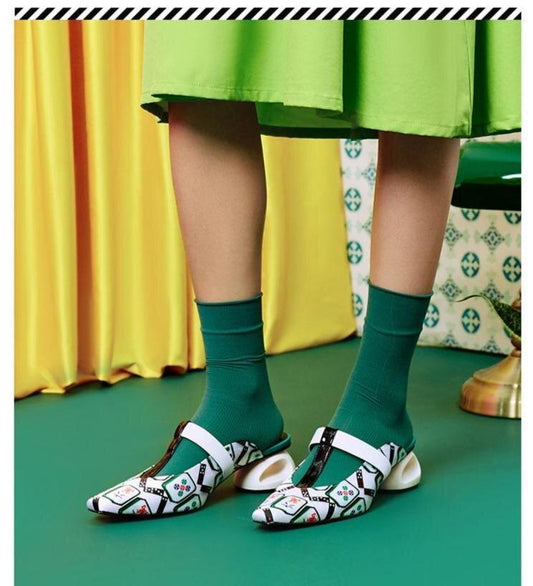 Tide playful mahjong printing Baotou half-drag hollow Muler shoes - Muller