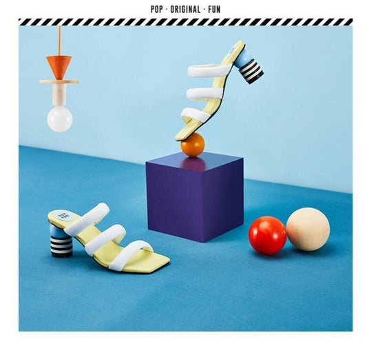 Tide Macarons color stripe round high-heeled slippers - Sio