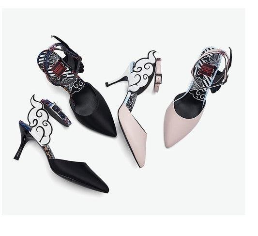 HOA clouds retro printing ankle strap pumps high heels -Tillo Jinghuayuan series retro style women's shoes