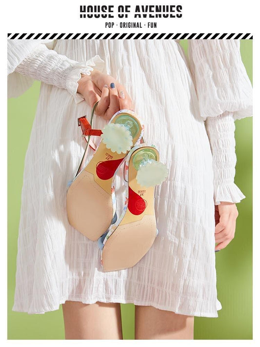 HOA street fashion quirky letter jelly Graffiti crystal heeled summer sandals - Sulu