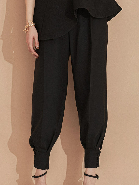 BLACK COCKTAIL BAGGY TROUSERS WITH ANKLE CUFF - MEPU
