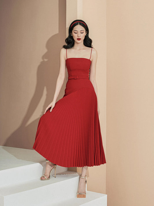 LUXURY ELEGANT SOPHISTICATED PLEATED PLEATED MIDI DRESS - CELIA
